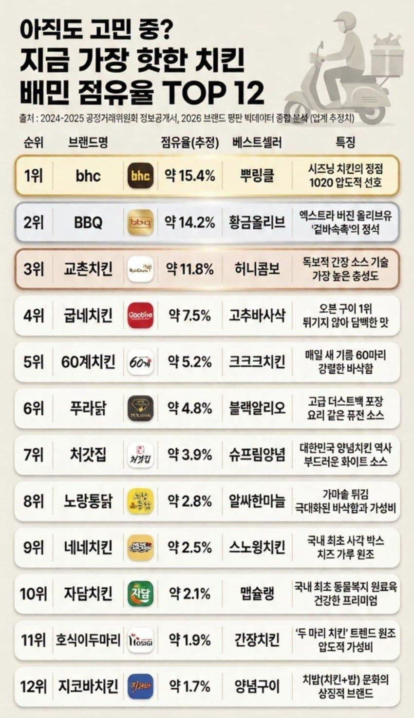 배민 점유율 탑 12 치킨 브랜드.jpg 작성자solid|작성시간26.02.23|조회수5,406 목록 댓글 16 글자크기 작게가 글자크기 크게가 다음검색 현재 게시글 추가 기능 열기 북마크 공유하기 신고 센터로 신고 댓글 댓글 16 댓글쓰기 답글쓰기 댓글 리스트 작성자Mateja Kezman | 작성시간 26.02.23 페리카나가 없다니 작성자콘후로스트 | 작성시간 26.02.23 와 작성자jangs | 작성시간 26.02.23 와 1,2,3 절대 안시키는 브랜드인데 ㄷㄷ 작성자K. Mbappe | 작성시간 26.02.23 푸라닭 굽네 투탑 작성자잉어붕어 | 작성시간 26.02.23 페리카나 ㅜㅜ 댓글 전체보기