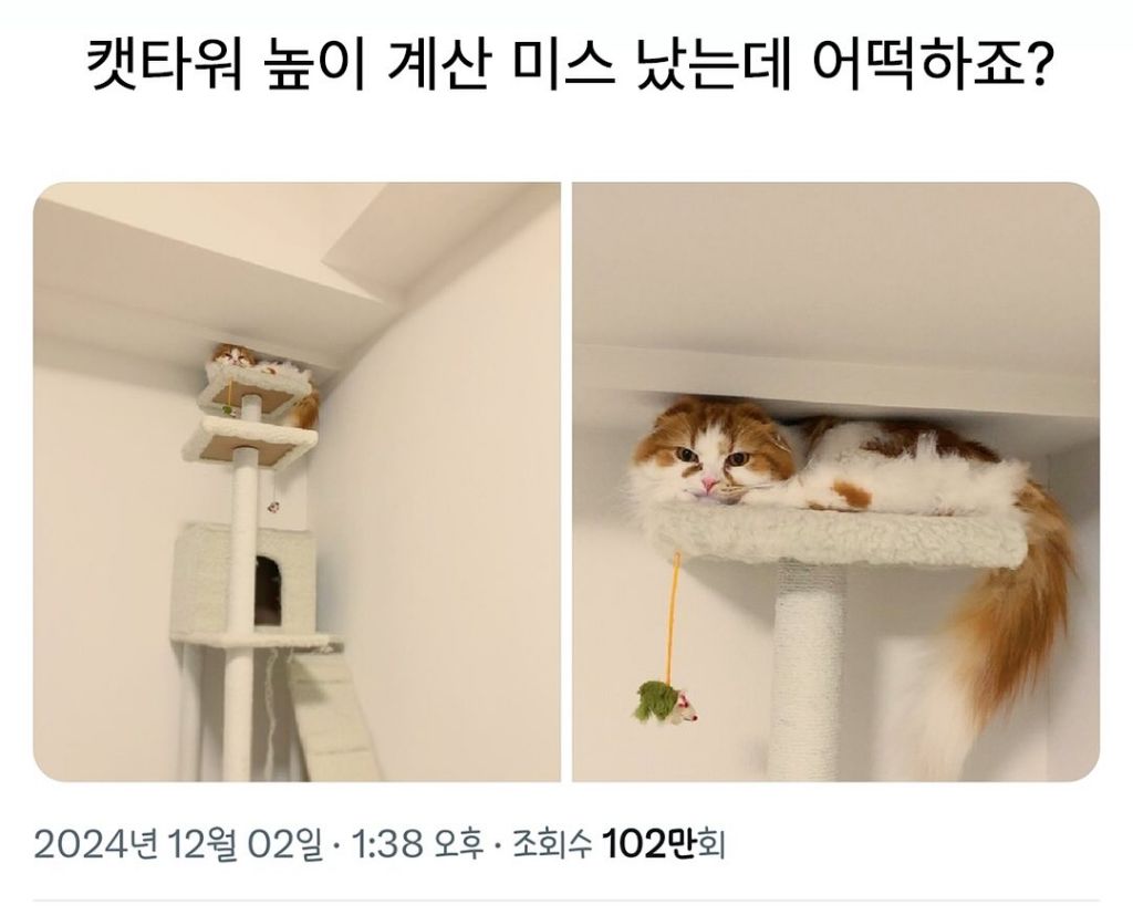 [동물]캣타워 높이 계산 잘못했는데 어떡하죠.. 작성자러바오|작성시간26.02.28|조회수4,937 목록 댓글 4 글자크기 작게가 글자크기 크게가 오히려 조아🐱 다음검색 현재 게시글 추가 기능 열기 북마크 공유하기 신고 센터로 신고 댓글 댓글 4 댓글쓰기 답글쓰기 댓글 리스트 작성자율이 | 작성시간 26.02.28 잘샀군아 집사 작성자奇誠庸 | 작성시간 26.02.28 ㅋㅋㅋㅋㅋㅋㅋㅋ 넘귀욥 작성자가는차편지보내자 | 작성시간 26.02.28 어떻하지 받아쓰기 백번 작성자고우림 | 작성시간 26.02.28 편안- 댓글 전체보기