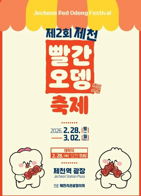 오늘부터 열리는 충북 제천 빨간오뎅 축제 작성자러바오|작성시간26.02.28|조회수2,319 목록 댓글 3 글자크기 작게가 글자크기 크게가 다음검색 현재 게시글 추가 기능 열기 북마크 공유하기 신고 센터로 신고 댓글 댓글 3 댓글쓰기 답글쓰기 댓글 리스트 작성자밀키스 | 작성시간 26.02.28 울엄마 여기가심 ㄷㄷ 작성자손챙이 | 작성시간 26.02.28 제천여행 참좋았음 작성자정예린2 | 작성시간 26.02.28 오뎅 ㄷㄷ 댓글 전체보기