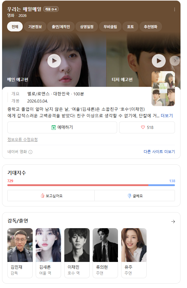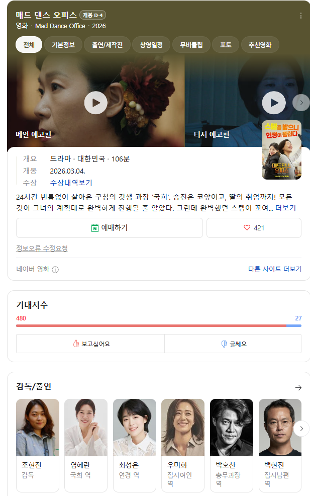 [영화]2026 3월 개봉예정 한국 영화 라인업.jpg 작성자탱구|작성시간26.02.28|조회수2,952 목록 댓글 1 글자크기 작게가 글자크기 크게가 다음검색 현재 게시글 추가 기능 열기 북마크 공유하기 신고 센터로 신고 댓글 댓글 1 댓글쓰기 답글쓰기 댓글 리스트 작성자오스먼트 | 작성시간 26.02.28 이동휘 나오는거 재밌겠다! 댓글 전체보기