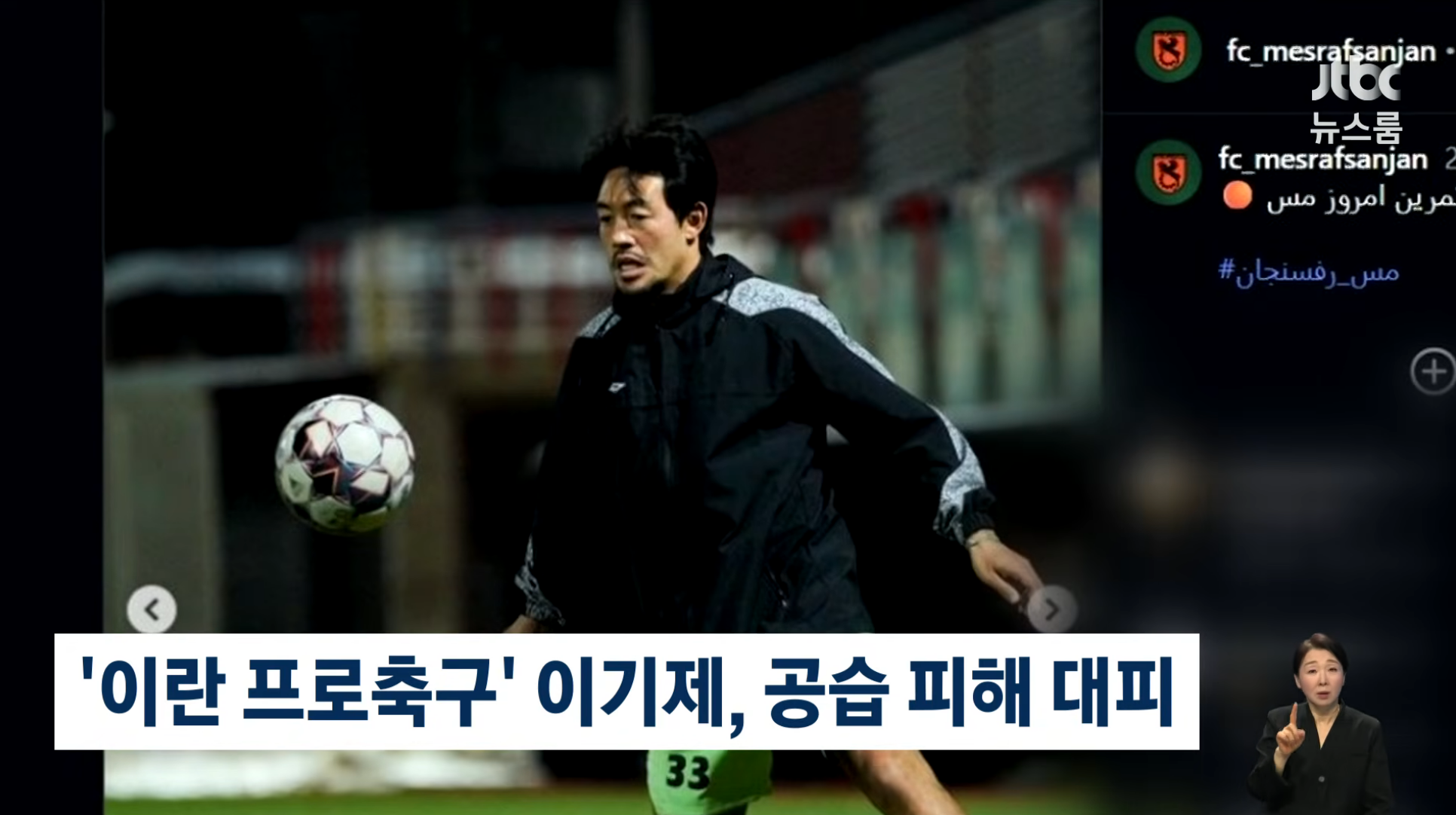 이란 프로축구에서 뛰고 있는 전 축구 국가대표 이기제 선수가 공습을 피해서 대비한 걸로 파악됐습니다.
