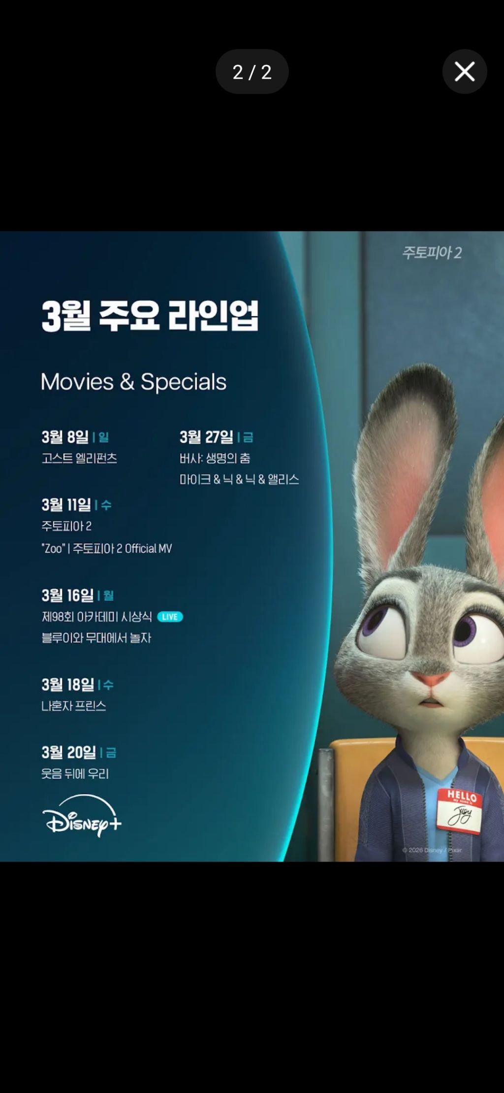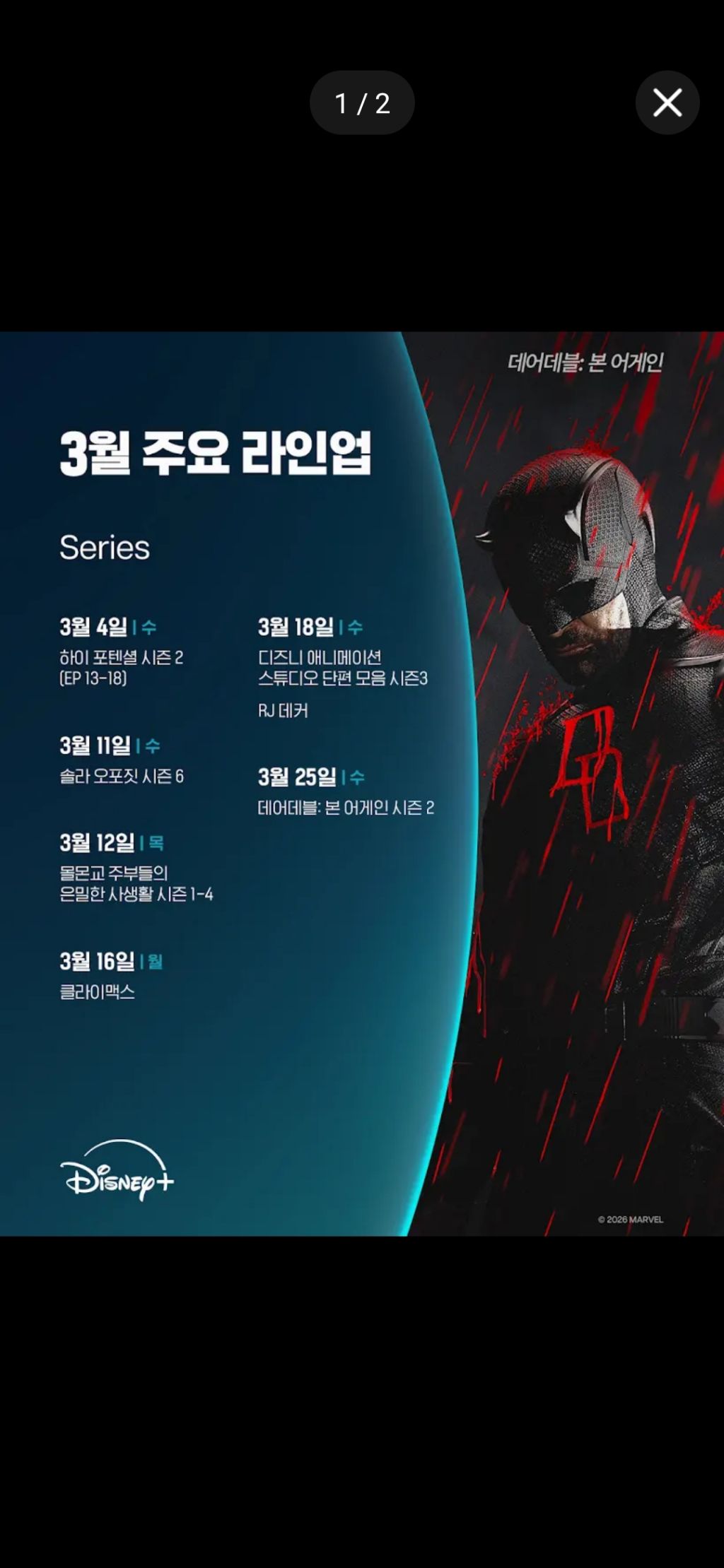 디즈니 플러스 3월 라인업 작성자톰 스파이더맨|작성시간26.03.02|조회수7,272 목록 댓글 3 글자크기 작게가 글자크기 크게가 다음검색 현재 게시글 추가 기능 열기 북마크 공유하기 신고 센터로 신고 댓글 댓글 3 댓글쓰기 답글쓰기 댓글 리스트 작성자맷 머독 | 작성시간 26.03.02 크 데데 드디어 ㄷㄷㄷ 작성자그로구 | 작성시간 26.03.02 헉!! 데어데블 투 나오나!!! 작성자서런토마 | 작성시간 26.03.02 아바타보다 주토피아가 더 빨리 올라오넹 댓글 전체보기