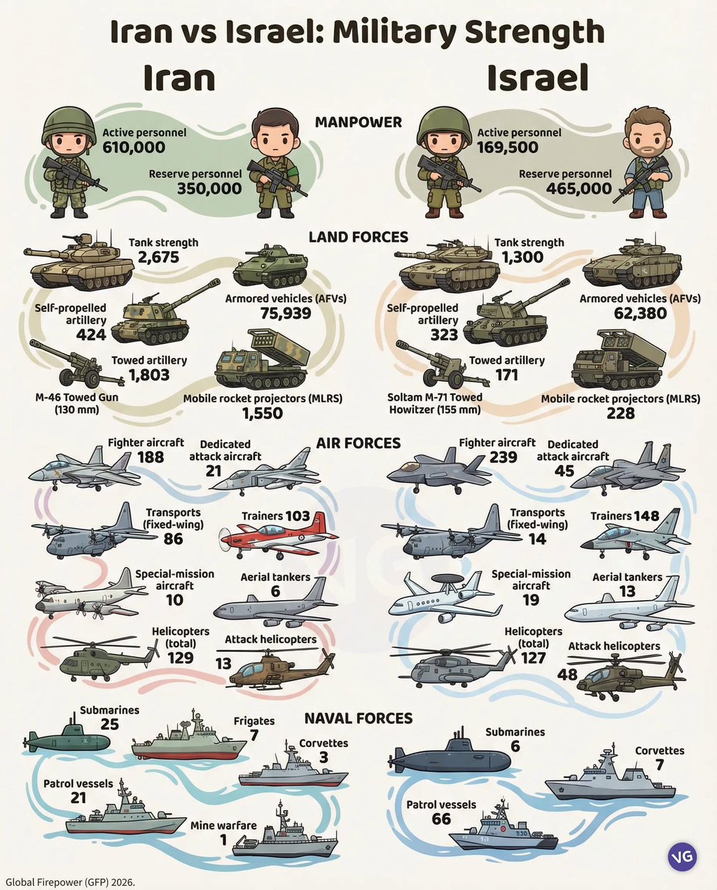 이란은 미사일 전력, 병력 수 빼면 이스라엘한테 밀리지 않나?