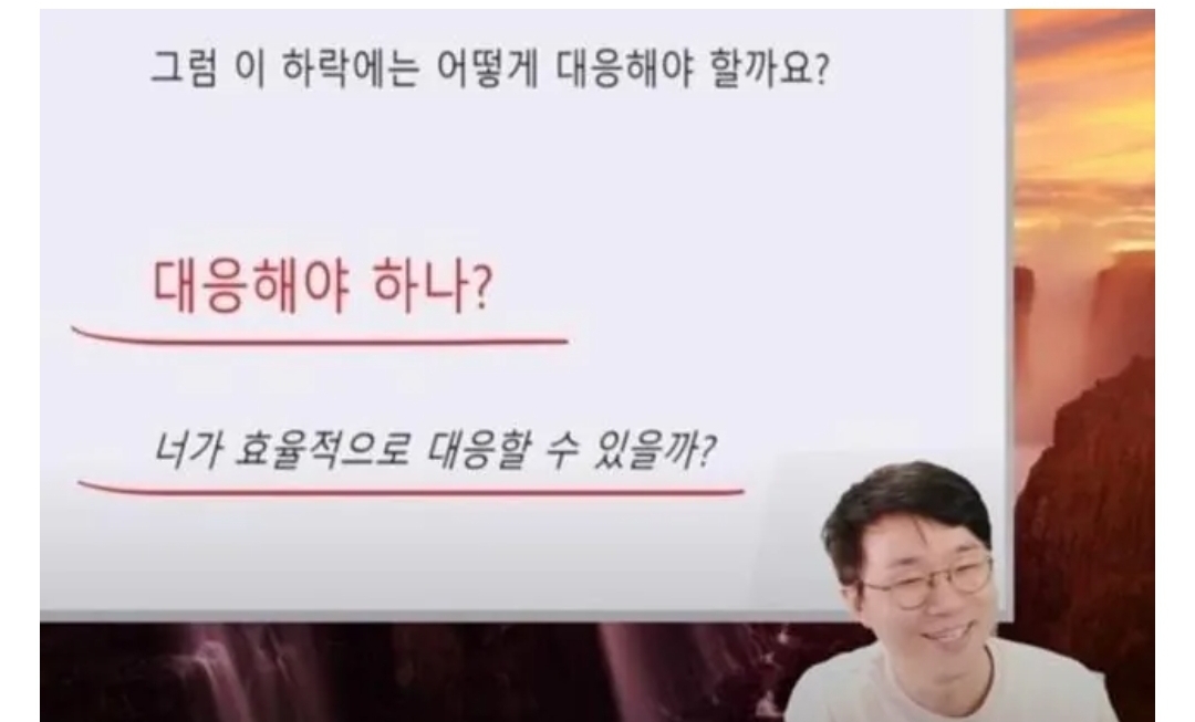참고로 저 영상 주요 골자는 일반인들은 대응하기 힘드니 대응보다는 예방이 중요하고 예방을 위해서 미리미리 현금확보하고 자산배분 해놓자는 거였어요