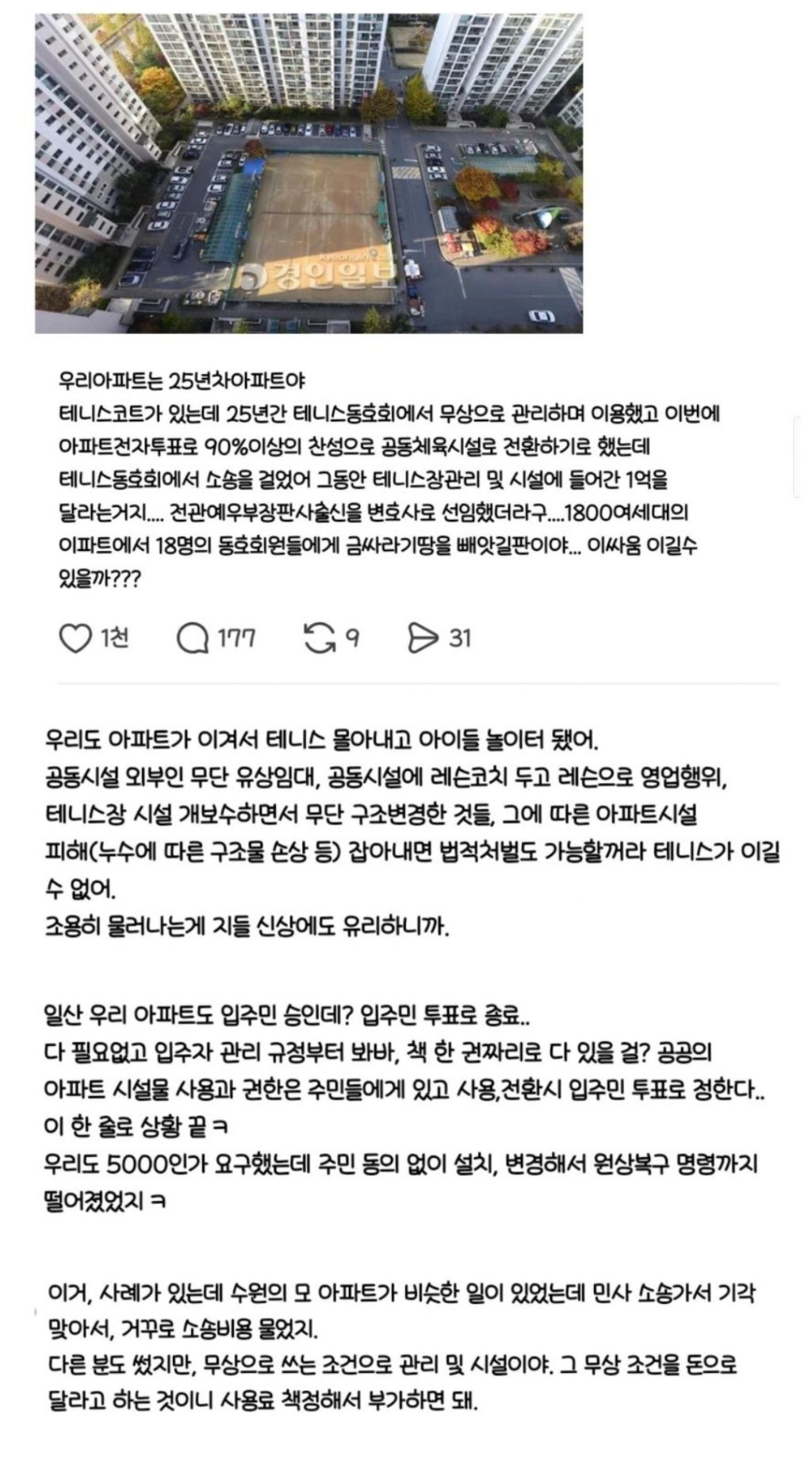 작성자땡복 작성시간 26.03.04 애초에 아파트 부지인데 아파트가 소송 지는게 말이 안됨 사용료만 부과해도 돈이 얼만데