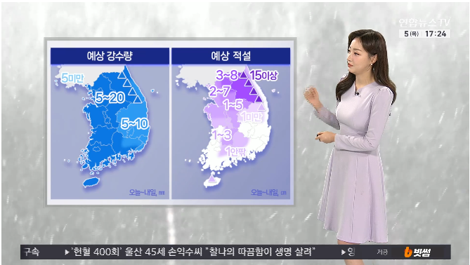 [기사]오늘 퇴근길 전국 예상 강수량, 적설량 예보.gisa 작성자탱구|작성시간26.03.05|조회수4,587 목록 댓글 1 글자크기 작게가 글자크기 크게가 https://www.yonhapnewstv.co.kr/news/MYH20260305173728Q1V[날씨] 내일 강풍 동반 눈·비…강원 산지 폭설오늘 퇴근하실 때 우산 잘 챙겨주셔야겠습니다.전국 대부분 지역에 비나 눈 소식이 들어 있는데요.늦은 오후에 중부와 호남을 시작으로, 밤에는 전국으로 확대되겠습니다.이 강수는 내일www.yonhapnewstv.co.kr 다음검색 현재 게시글 추가 기능 열기 북마크 공유하기 신고 센터로 신고 댓글 댓글 1 댓글쓰기 답글쓰기 댓글 리스트 작성자맨소래담 | 작성시간 26.03.05 집에 있어야지 댓글 전체보기