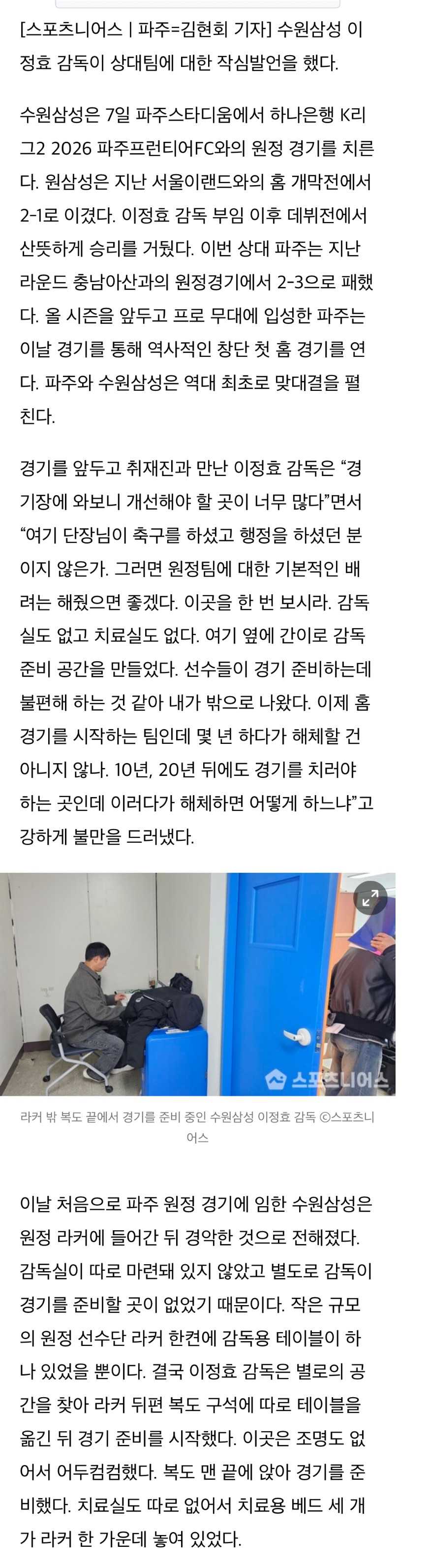 작성자I.B.I LUV 작성시간 26.03.07 이정효 시민구단 원정 갈 때마다 저런 말 할 거 같다.... 종합 쓰는 데는 다 열악하지....;;