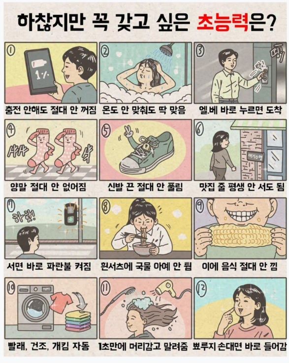 -커피 불사신: 책상 위 컵을 쳐도 내용물이 절대 쏟아지지 않고 컵 안에서만 찰랑거림.