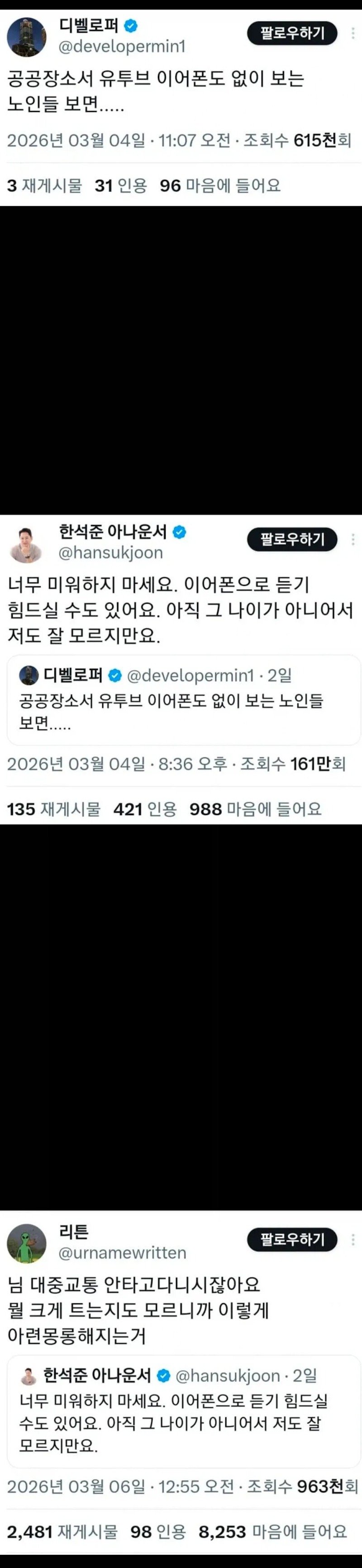 작성자고종수존 작성시간 26.03.08 진짜 요즘 새로운 빌런그룹으로 인간스피커들이 겁나 많음