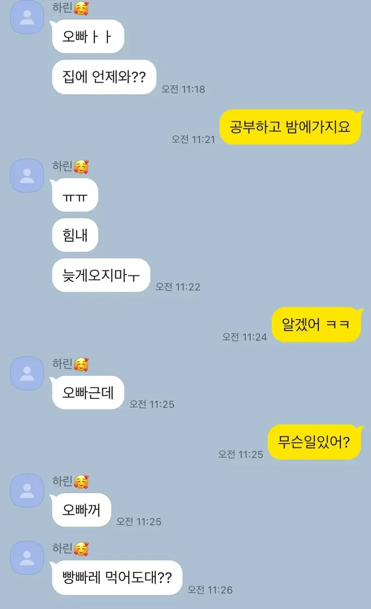 10살 차이나는 오빠와 막내 여동생의 카톡 작성자러바오|작성시간26.03.09|조회수29,582 목록 댓글 4 글자크기 작게가 글자크기 크게가 21살 11살이고중간에 언니는 둘째인데 17살 다음검색 현재 게시글 추가 기능 열기 북마크 공유하기 신고 센터로 신고 댓글 댓글 4 댓글쓰기 답글쓰기 댓글 리스트 작성자두쫀쿠 | 작성시간 26.03.09 애교가 살살 녹네 ㄱㅇㅇ 작성자음교수 | 작성시간 26.03.09 귀요미 ㅎㅎㅎ 작성자정예린2 | 작성시간 26.03.09 ㄱㅇㅇ 작성자피버노바 | 작성시간 26.03.09 ㅋㅋㅋ 댓글 전체보기