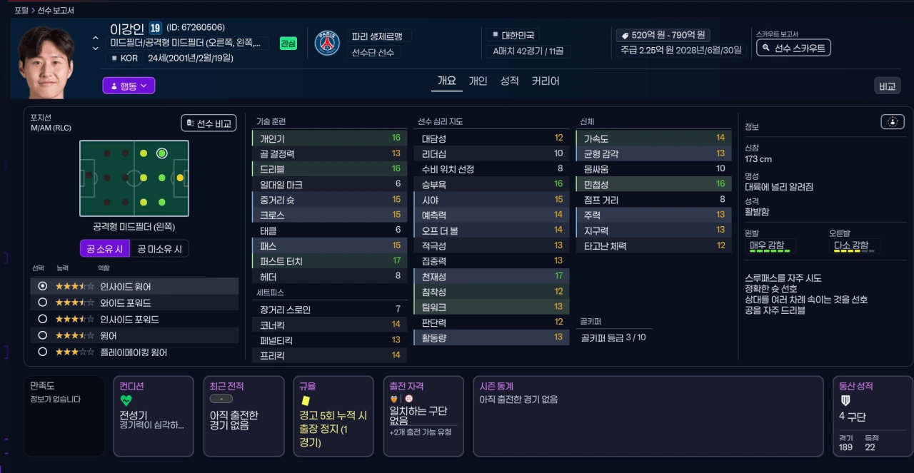 현지 리서치들이 신경 써주는 듯 뭐 패스랑 킥 관련은 더 올려줘야 한다 싶지만 준양발에 분배가 너무 좋다