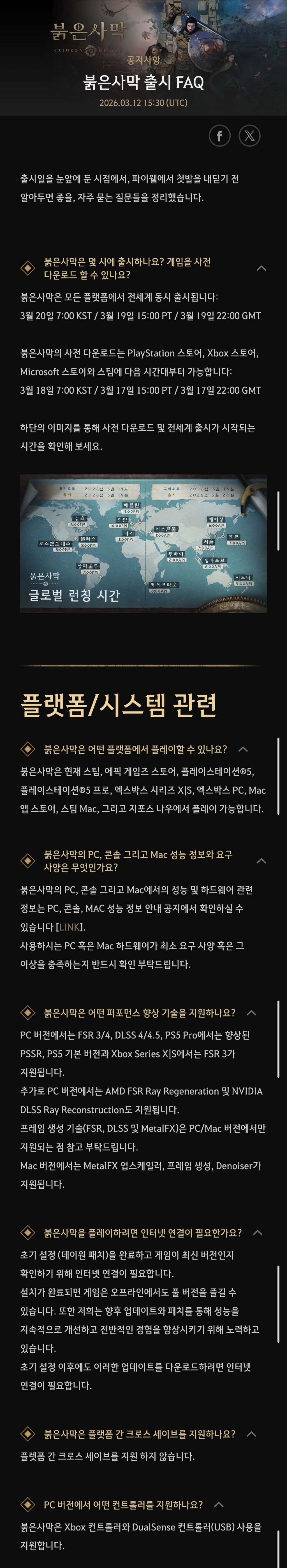 [게임]붉은사막 출시 FAQ 작성자Professor|작성시간26.03.13|조회수2,403 목록 댓글 6 글자크기 작게가 글자크기 크게가 https://crimsondesert.pearlabyss.com/ko-KR/News/Notice/Detail?_boardNo=63 다음검색 현재 게시글 추가 기능 열기 북마크 공유하기 신고 센터로 신고 댓글 댓글 6 댓글쓰기 답글쓰기 댓글 리스트 작성자심재원 송종국 | 작성시간 26.03.13 액박 게임패스에서도 될려나 작성자FRANCE | 작성시간 26.03.13 플스5랑 5080pc가 있다면 무조건 pc가 낫겠죠?? 답댓글 작성자리오넬 만길 | 작성시간 26.03.13 무조건이죠 답댓글 작성자FRANCE | 작성시간 26.03.13 리오넬 만길 피씨로 가겠습니다 ㅋㅋ 작성자오이는빼고주세요 | 작성시간 26.03.13 살까말까 댓글 전체보기