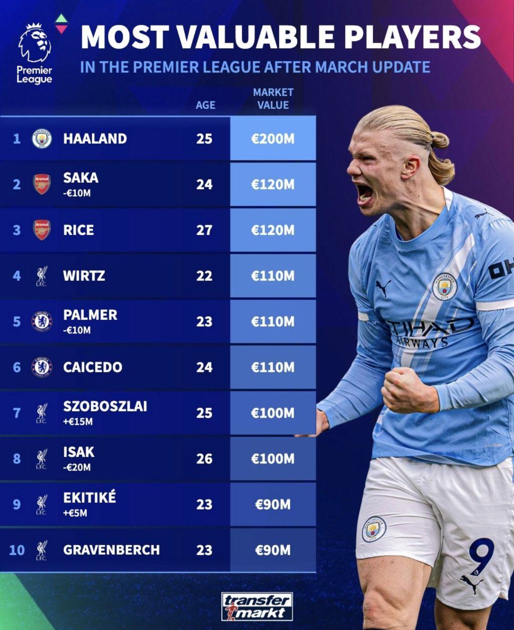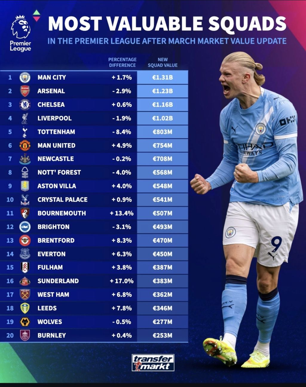 [스포츠]트랜스퍼마켓 EPL 시장가치 순위 작성자한교동|작성시간26.03.14|조회수2,058 목록 댓글 2 글자크기 작게가 글자크기 크게가 EPL 클럽 선수단 시장가치EPL 선수 시장가치순 다음검색 현재 게시글 추가 기능 열기 북마크 공유하기 신고 센터로 신고 댓글 댓글 2 댓글쓰기 답글쓰기 댓글 리스트 작성자리버풀만바라봐 | 작성시간 26.03.14 리버풀 다 올라가야지 작성자추워추워추워추워 | 작성시간 26.03.14 와 토트넘 레전드 댓글 전체보기