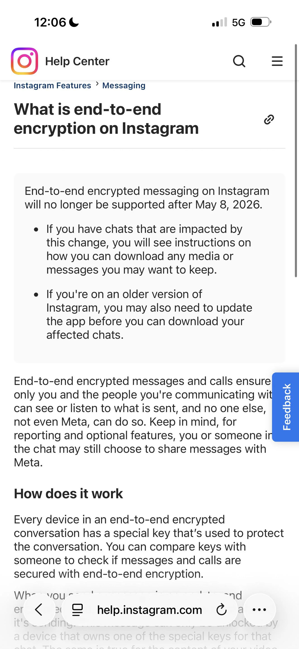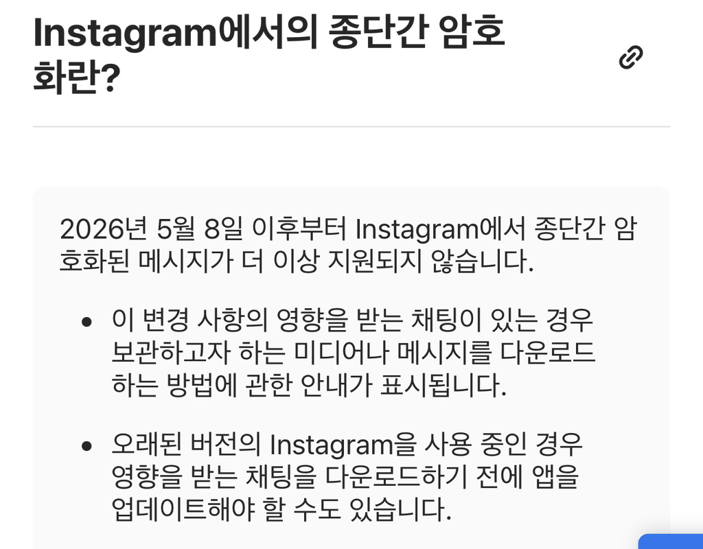 암호화된 채팅에서는 Instagram이나 제3자가 메시지 내용을 볼 수 없음