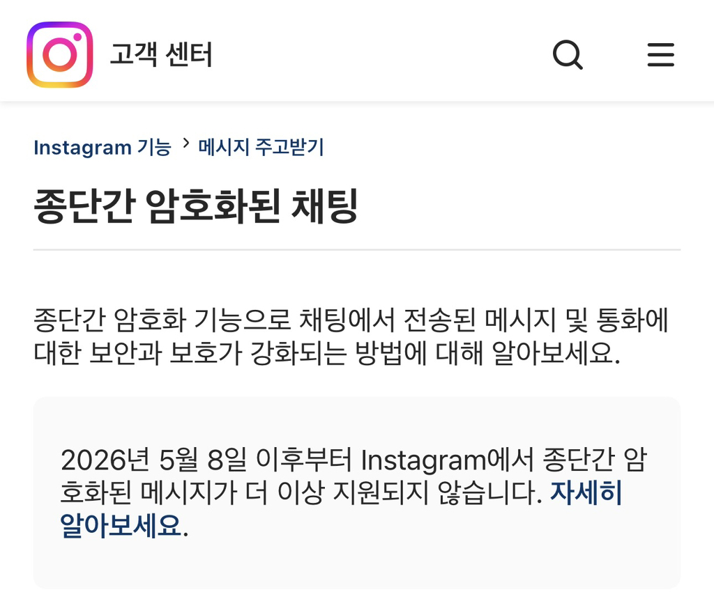 5월 9일부터 종단암호화 중단 예정