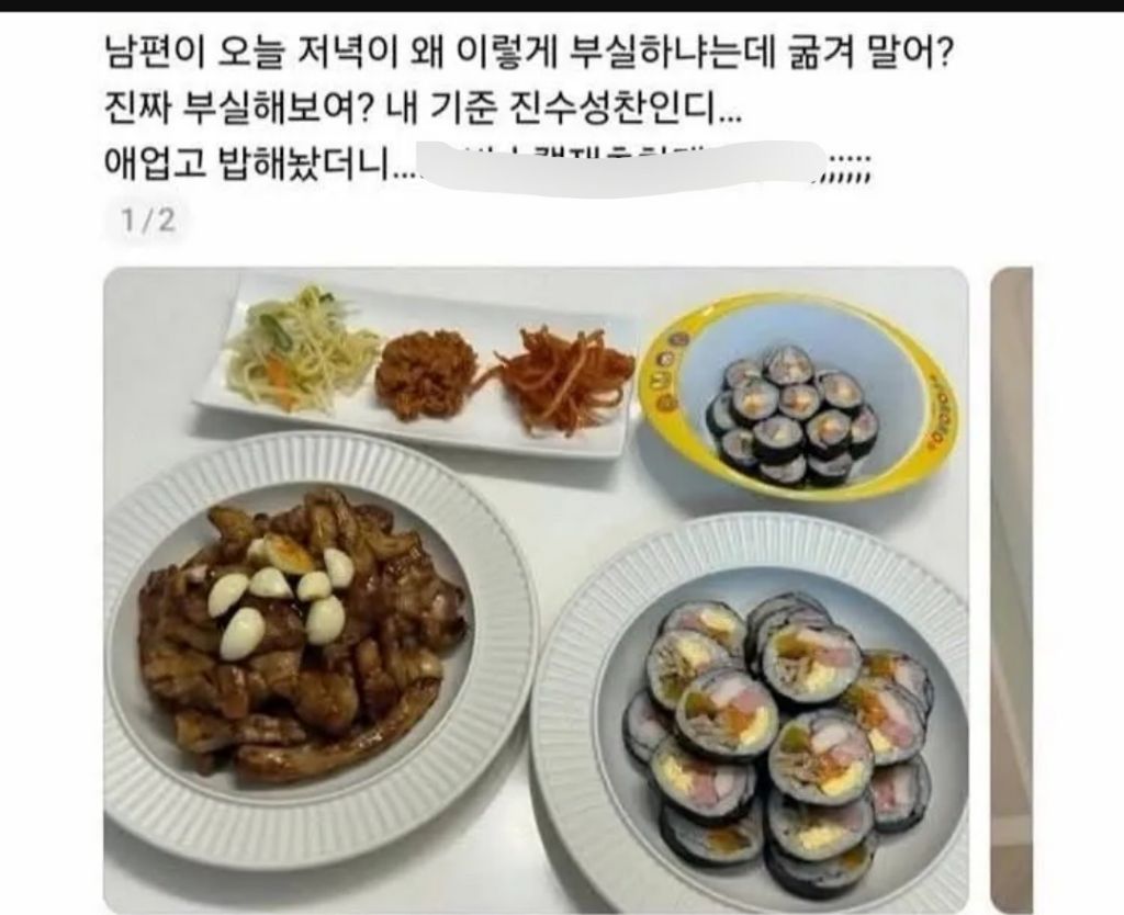 저녁이 부실하다는 남편 작성자러바오|작성시간26.03.17|조회수14,079 목록 댓글 20 글자크기 작게가 글자크기 크게가 다음검색 현재 게시글 추가 기능 열기 북마크 공유하기 신고 센터로 신고 댓글 댓글 20 댓글쓰기 답글쓰기 댓글 리스트 작성자진보 | 작성시간 26.03.17 자랑글인듯 작성자총알로벤 | 작성시간 26.03.17 김밥만 만드는데도 얼마나 시간이 많이 걸리는데...... 작성자YouTube | 작성시간 26.03.17 굶겨 작성자블루스카이 | 작성시간 26.03.17 와이프 성질 까먹은 모양이네 작성자I.B.I LUV | 작성시간 26.03.17 먹지 말라고 하쇼...... 고기가 있는데??? 댓글 전체보기