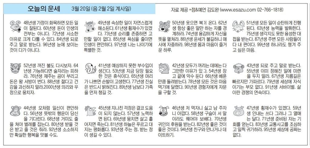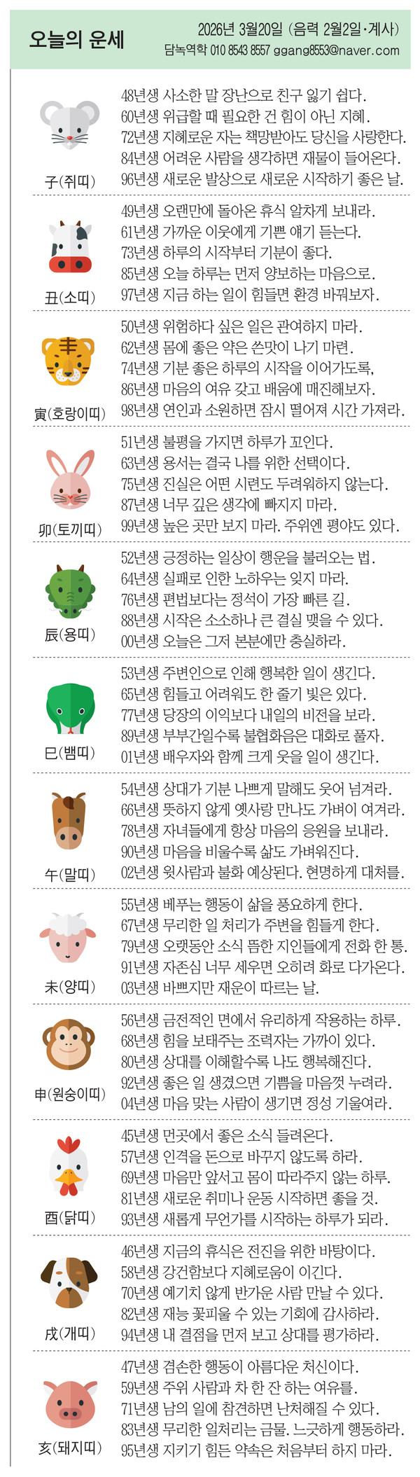 樂soccer 3월 20일 금요일 오늘의 운세 작성시간26.03.20|조회수2,654 목록 댓글 12 글자크기 작게가 글자크기 크게가 다음검색 현재 게시글 추가 기능 열기 북마크 공유하기 신고 센터로 신고 댓글 12 댓글 리스트 작성시간 26.03.20 복채요 작성시간 26.03.20 복채요 작성시간 26.03.20 복채용 작성시간 26.03.20 복채요 작성시간 26.03.20 복채요 카페 방문해 더 많은 댓글 만나기!