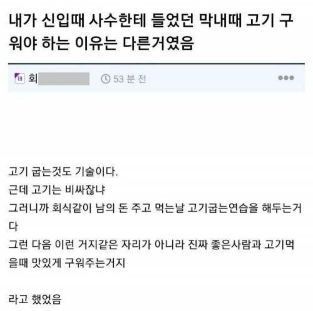 작성자Panzerkampfwagen 작성시간 26.03.27 근데 막내 때 고기 많이 굽다보니 여친이랑 있을 때 고기 잘 구워주고 칭찬받긴 했었음 ㅋㅋㅋ