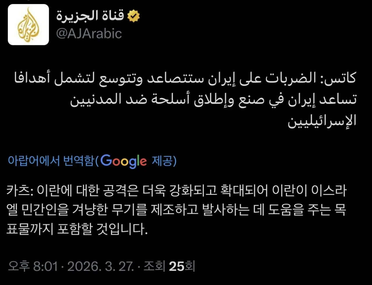 작성자소녀시대 윤아 작성시간 26.03.27 죽여봐야 의미도 없던데 이란만 더 강경하게만 만들고