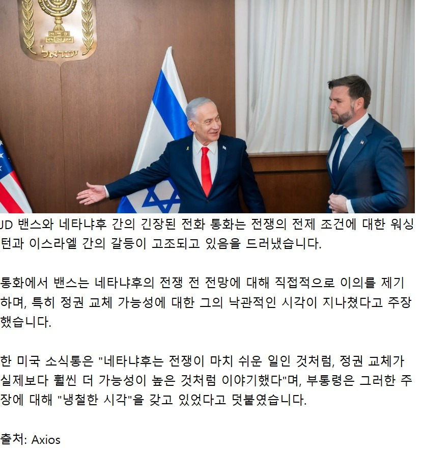 [정보]“착각 마라, 전쟁이 장난인가?” JD 밴스, 네타냐후 면전서 ‘극딜’ 작성자데니스 코펜하겐|작성시간26.03.27|조회수2,571 목록 댓글 3 글자크기 작게가 글자크기 크게가 이야 이젠 밴스가 정상인으로 보일 정도네요 쟤도 어지간히 또XX인데 말이죠 다음검색 현재 게시글 추가 기능 열기 북마크 공유하기 신고 센터로 신고 댓글 댓글 3 댓글쓰기 답글쓰기 댓글 리스트 작성자피카츄 | 작성시간 26.03.27 이건 밴스 응원한다 작성자호랑이굴서식중 | 작성시간 26.03.27 힐빌리의 노래 읽어봤는데 밴스는 원래부터 도라이는 아닌듯..(부디 그러길 빕니다) 작성자I’d rather be ashes than dust | 작성시간 26.03.27 밴스가 정상인으로 보일 지경이라니 댓글 전체보기