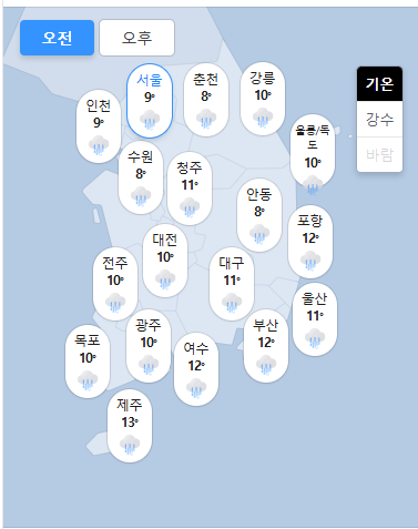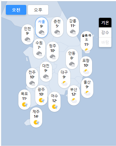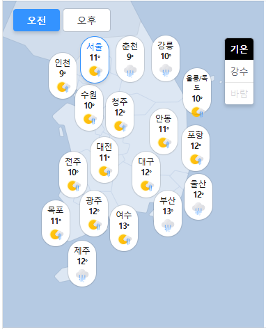 [정보]4월 시작되는 다음주 전국 날씨 예보.jpg 작성자탱구|작성시간26.03.29|조회수2,790 목록 댓글 7 글자크기 작게가 글자크기 크게가 30일 월 31일 화 4월 1일 수 4월 2일 목 4월 3일 금 4월 4일 토 다음검색 현재 게시글 추가 기능 열기 북마크 공유하기 신고 센터로 신고 댓글 댓글 7 댓글쓰기 답글쓰기 댓글 리스트 작성자갰랍랍 | 작성시간 26.03.29 비오면서 미세먼지 좀 씻어라 어휴 작성자 박지현 | 작성시간 26.03.29 ㅇㅏ 토욜 포항 원정가는디 비오넹ㅜ 작성자정예린2 | 작성시간 26.03.29 ㄷㄷㄷㄷ 작성자순살족발 | 작성시간 26.03.29 슬슬 자전거 정비좀 해야겠다 작성자전소민 | 작성시간 26.03.30 토욜 비 오면 안되는데 댓글 전체보기