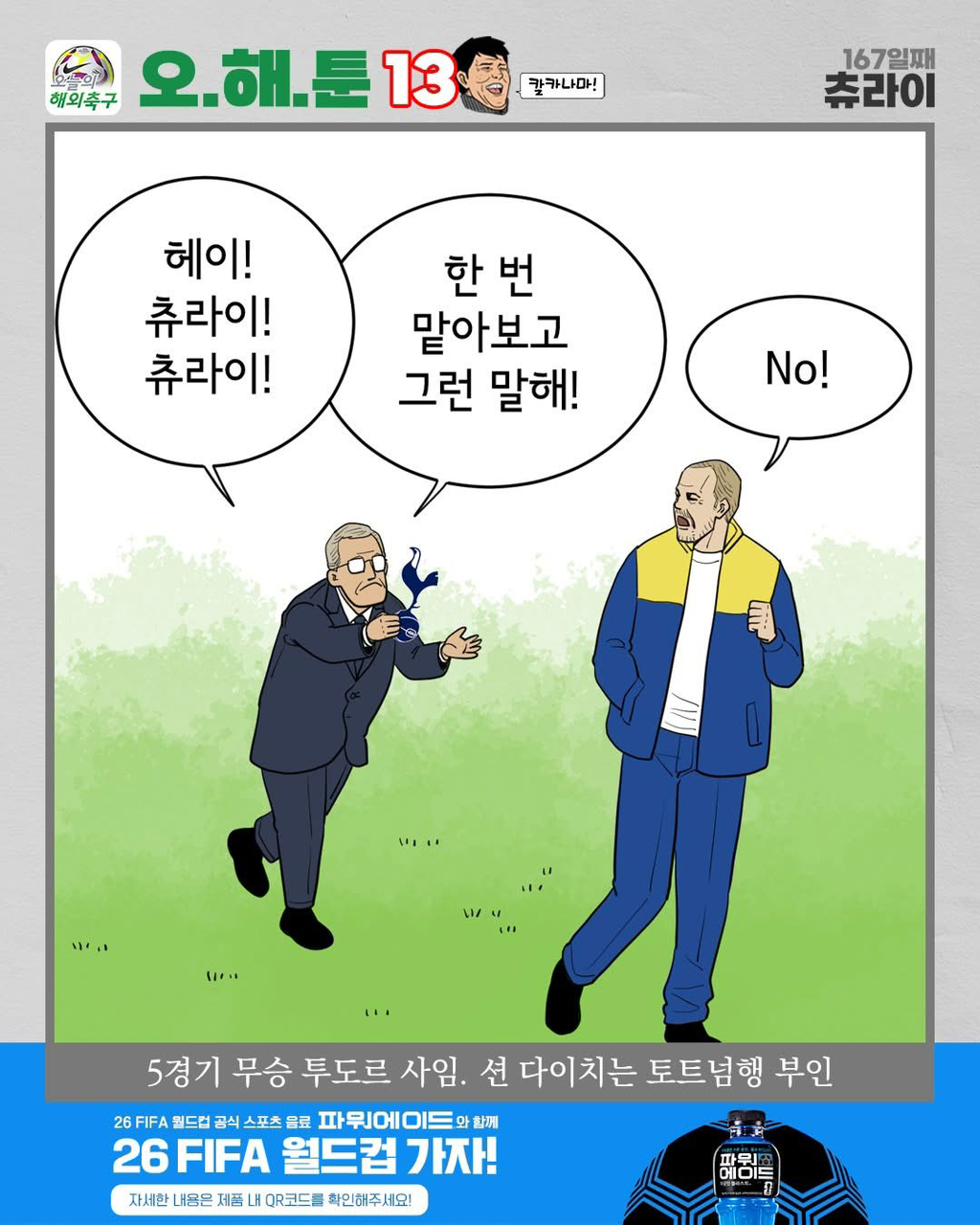 [스포츠]오늘자 칼카나마 축구카툰.jpg 작성자이태석이승준|작성시간26.03.30|조회수558 목록 댓글 1 글자크기 작게가 글자크기 크게가 토트넘의 투도르 감독이 부임 44일 만에 5경기 무승이라는 초라한 성적으로 사임한 가운데 후임으로 유력했던 션 다이치 감독은 토트넘행을 공식 부인했다. 출처:오늘의 해외축구 다음검색 현재 게시글 추가 기능 열기 북마크 공유하기 신고 센터로 신고 댓글 댓글 1 댓글쓰기 답글쓰기 댓글 리스트 작성자Tensegrity Universe and Philosophy | 작성시간 26.03.30 new ㅋㅋㅋ 댓글 전체보기