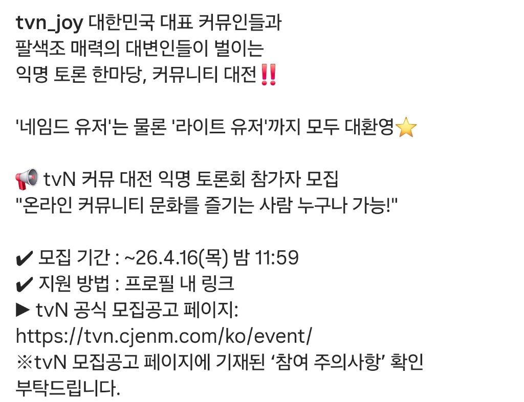 [SNS]tvN 커뮤대전 공개모집ㄷㄷㄷ 작성자Professor|작성시간26.03.30|조회수3,329 목록 댓글 29 글자크기 작게가 글자크기 크게가 https://www.instagram.com/p/DWgOyUYAcFy/?img_index=4&igsh=a3BvMjJ6NnNxemdw락싸 대표 있습니까아 다음검색 현재 게시글 추가 기능 열기 북마크 공유하기 신고 센터로 신고 댓글 댓글 29 댓글쓰기 답글쓰기 댓글 리스트 작성자중고차파괴자 | 작성시간 26.03.30 인스타에 특정게시물에만 몰려오는 가계정 애들 조사나좀 해봐 작성자정휘인 | 작성시간 26.03.30 고소 통발인가 ㅋㅋㅋㅋㅋㅋ 작성자아메리카노 | 작성시간 26.03.31 ㅋㅋㅋㅋㅋㅋ 작성자개솔수고 | 작성시간 26.03.31 보배 굴욕이네 저 틈에 껴있으니 작성자마테우스 쿠냐 | 작성시간 26.03.31 테스야 다녀와라 댓글 전체보기