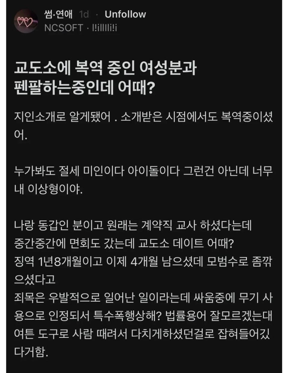 작성자프랭크 램파드 작성시간 26.03.31 복역중인 사람을 소개시켜준게 신기하네