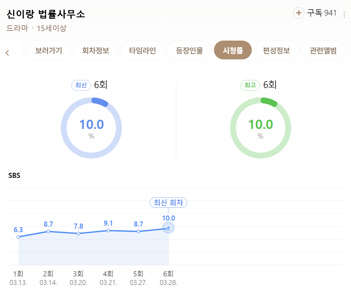 [방송]SBS '신이랑 법률사무소' 시청률 추이 작성자서스날|작성시간26.04.01|조회수7,478 목록 댓글 4 글자크기 작게가 글자크기 크게가 총 16부작 다음검색 현재 게시글 추가 기능 열기 북마크 공유하기 신고 센터로 신고 댓글 댓글 4 댓글쓰기 답글쓰기 댓글 리스트 작성자Paul Dummett | 작성시간 26.04.01 오 재밌나 한번 봐야겠양 작성자정예린2 | 작성시간 26.04.01 재밌음 ㅎㅎ 작성자카리나Kirina | 작성시간 26.04.01 꿀잼 ㅋㅋㅋ 작성자奇誠庸 | 작성시간 26.04.01 채널 돌리다가 우연히 5회부터 보게 됐는데 잼나서 6회도 챙겨 봄 ㄷㄷ 댓글 전체보기