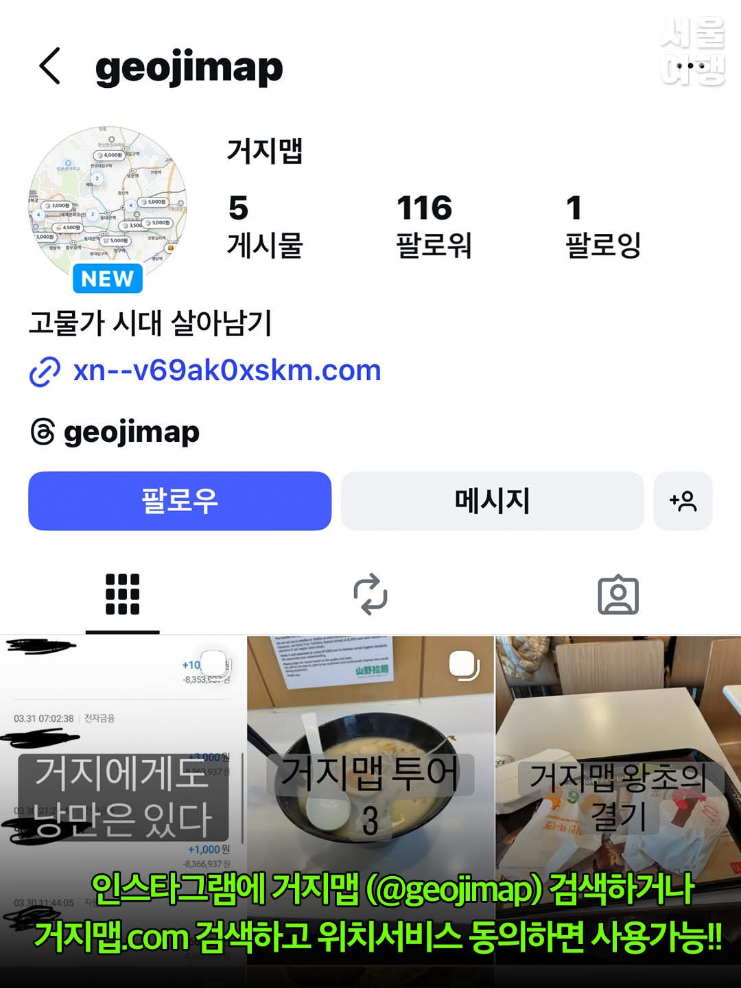 고물가 시대 저렴한 식사를 위한 거지맵 듕댱 작성자가을날4|작성시간26.04.01|조회수9,997 목록 댓글 3 글자크기 작게가 글자크기 크게가 출처 서울여행 다음검색 현재 게시글 추가 기능 열기 북마크 공유하기 신고 센터로 신고 댓글 댓글 3 댓글쓰기 답글쓰기 댓글 리스트 작성자Noel Gallagher | 작성시간 26.04.01 오 이런거 좋다 작성자소소비2 | 작성시간 26.04.01 거지라고 하지말지 가성비라고 하던지 작성자베니테즈 | 작성시간 26.04.01 전국구 인가요? 댓글 전체보기