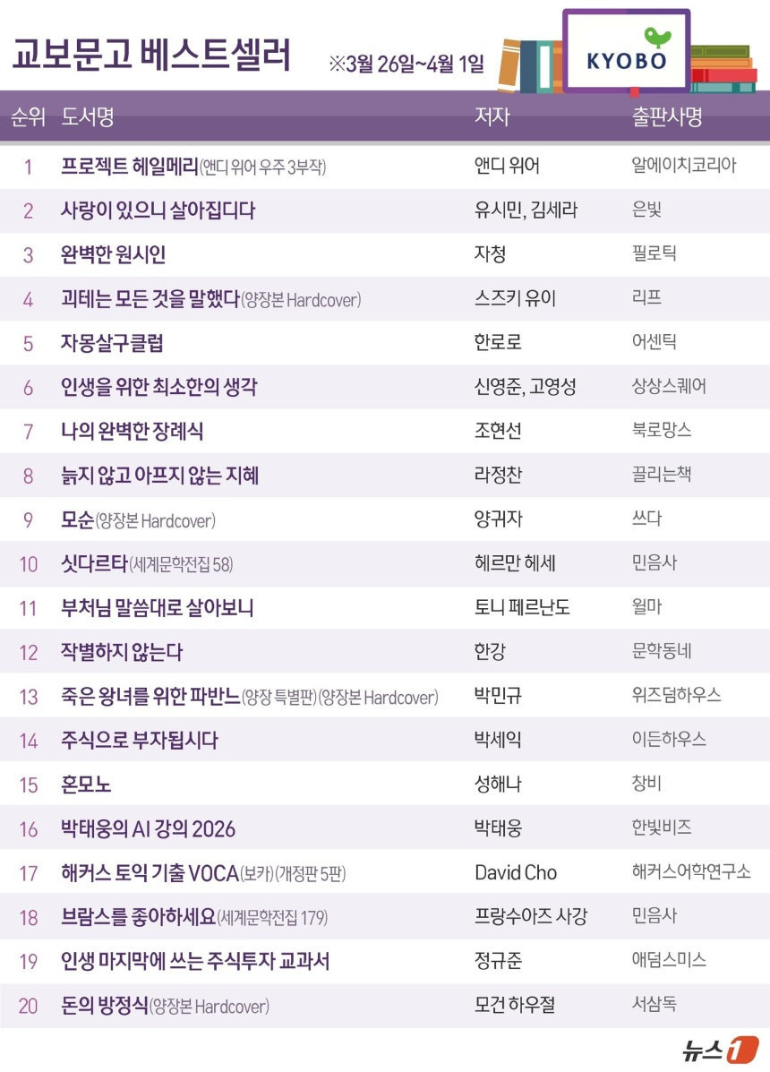 라이언 고슬링 영화 원작 '프로젝트 헤일메리' 1위