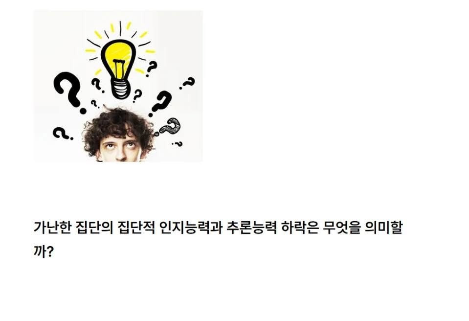 가난과 지능의 상관관계 작성자가을날4|작성시간26.04.04|조회수6,725 목록 댓글 2 글자크기 작게가 글자크기 크게가 어...? 다음검색 현재 게시글 추가 기능 열기 북마크 공유하기 신고 센터로 신고 댓글 댓글 2 댓글쓰기 답글쓰기 댓글 리스트 작성자울산 현대 | 작성시간 26.04.04 먹고사는 문제가 해결되어야 그 다음으로 갈 수 있음 작성자메친놈 | 작성시간 26.04.04 생존의 관점에서 안정은 각자가 다 다를수밖에없음 정량화할수없는문제를가지고 사회적안정망이 필요하다는식으로 흘러가면 진짜 넌센스임ㅠ 댓글 전체보기