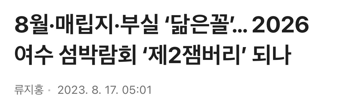 홍보가 아니라 사실상 내부고발 영상이라는 김선태 여수 홍보 영상 작성자가을날4|작성시간26.04.04|조회수3,029 목록 댓글 9 글자크기 작게가 글자크기 크게가 사실상 제2의 잼버리 확정적이라는 여수시민들 의견도 많음 다음검색 현재 게시글 추가 기능 열기 북마크 공유하기 신고 센터로 신고 댓글 댓글 9 댓글쓰기 답글쓰기 댓글 리스트 답댓글 작성자땡복 | 작성시간 26.04.04 600억 들어갔는데 심각하네ㄷㄷ 작성자난누군가또여긴어딘가. | 작성시간 26.04.04 방금전에 유튭에서 이거 뉴스보고 왔는데 작성자여수종포해양공원관리실 주임원사 | 작성시간 26.04.04 여수시민들도 절레절레제 2 잼버리 작성자램파죠 | 작성시간 26.04.04 담당자 머리 잘썼네 작성자I.B.I LUV | 작성시간 26.04.04 준비 1도 안 된 건 참나...... 댓글 전체보기