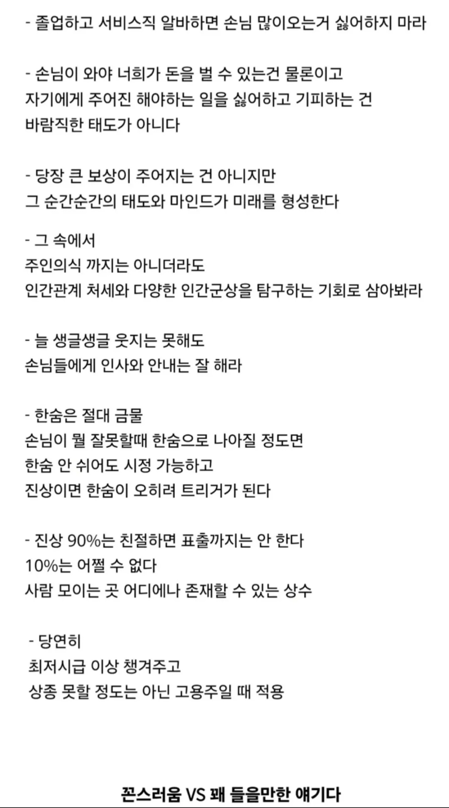 고등학교 교사의 사회생활 조언.txt 작성자멘유|작성시간26.04.04|조회수2,026 목록 댓글 3 글자크기 작게가 글자크기 크게가 다음검색 현재 게시글 추가 기능 열기 북마크 공유하기 신고 센터로 신고 댓글 댓글 3 댓글쓰기 답글쓰기 댓글 리스트 작성자밥가져와밥 | 작성시간 26.04.04 후자 작성자오스먼트 | 작성시간 26.04.04 무조건 후자죠! 작성자커리커피 | 작성시간 26.04.04 이런 것도 꼰으로 받아들일거면 그냥 심보가 무슨 말이든 꼰으로 들을 준비가 된 사람일듯 댓글 전체보기