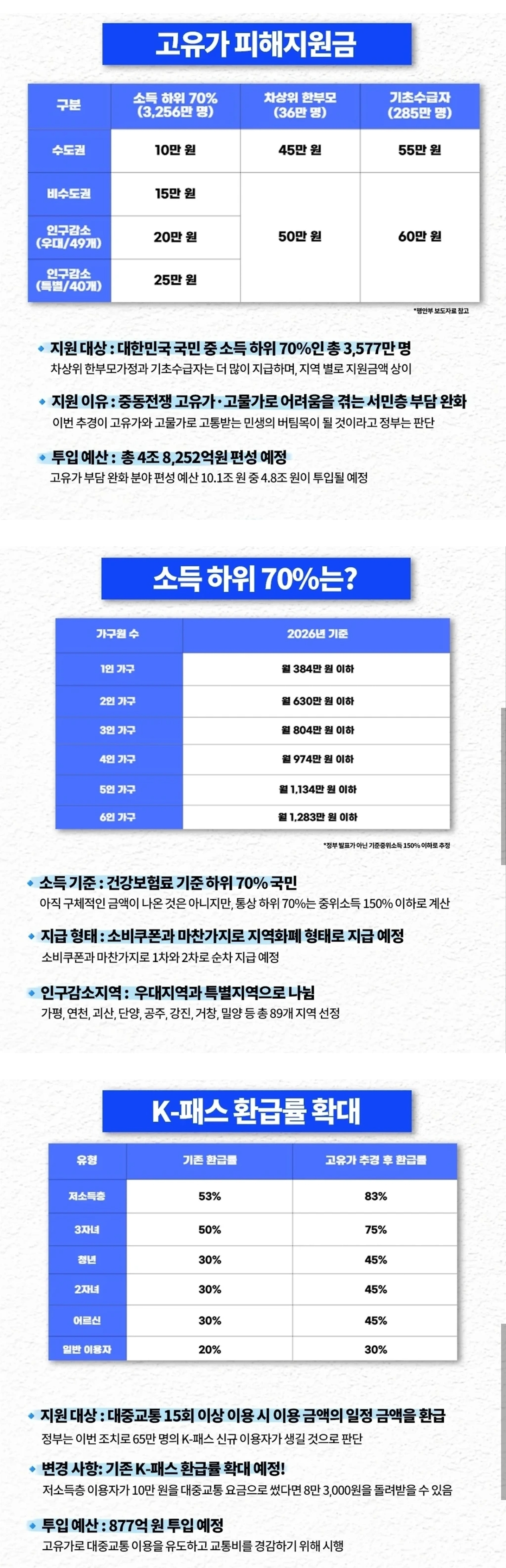 작성자슈바인슈타이거 작성시간 26.04.07 고유가 자체로 인한 저소득층의 경제적 부담이 아니라 고유가로 인해 물가 상승 -> 저소득층의 경제적 부담 해소가 목적이므로 유류비지원 등이 아니라 현금지원을 하는 것..