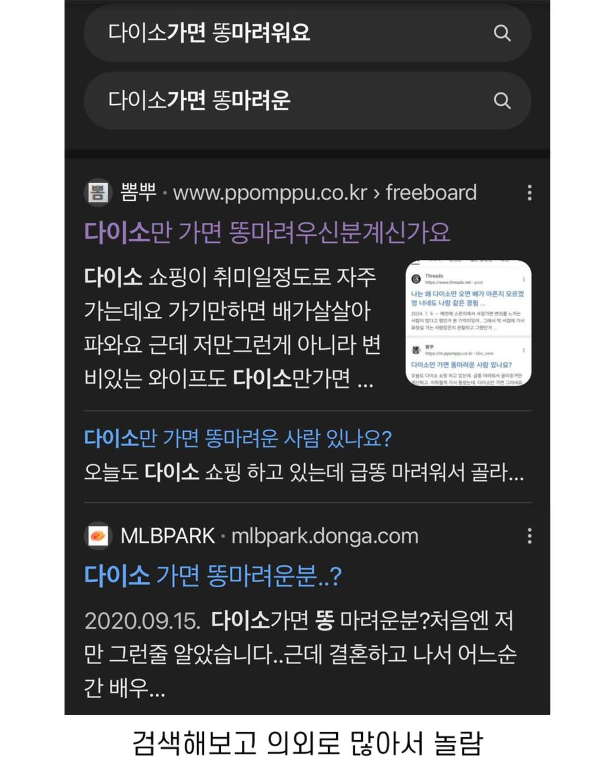 심지어 울동네 다이소는 화장실이 없음. 나가서 길 건너 지하철역 가서 화장실 가야 하는데 진짜 자주 마려움 ㄷㄷ
