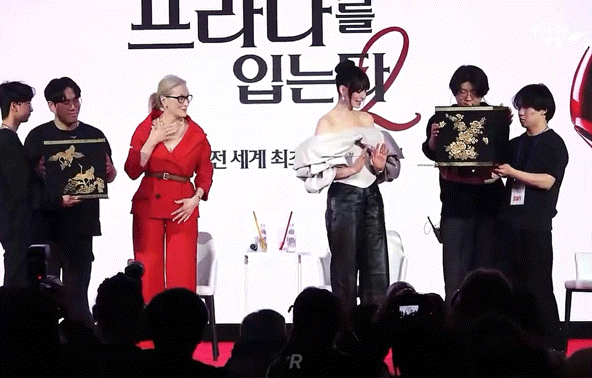 [연예]악마는 프라다를 입는다2 내한행사에서 K- 꽃신 선물 받는 메릴 스트립, 앤 해서웨이.gif 작성자Real Reds|작성시간26.04.09|조회수773 목록 댓글 1 글자크기 작게가 글자크기 크게가 다음검색 현재 게시글 추가 기능 열기 북마크 공유하기 신고 센터로 신고 댓글 댓글 1 댓글쓰기 답글쓰기 댓글 리스트 작성자소닉 | 작성시간 26.04.09 너무 예뻐요 댓글 전체보기