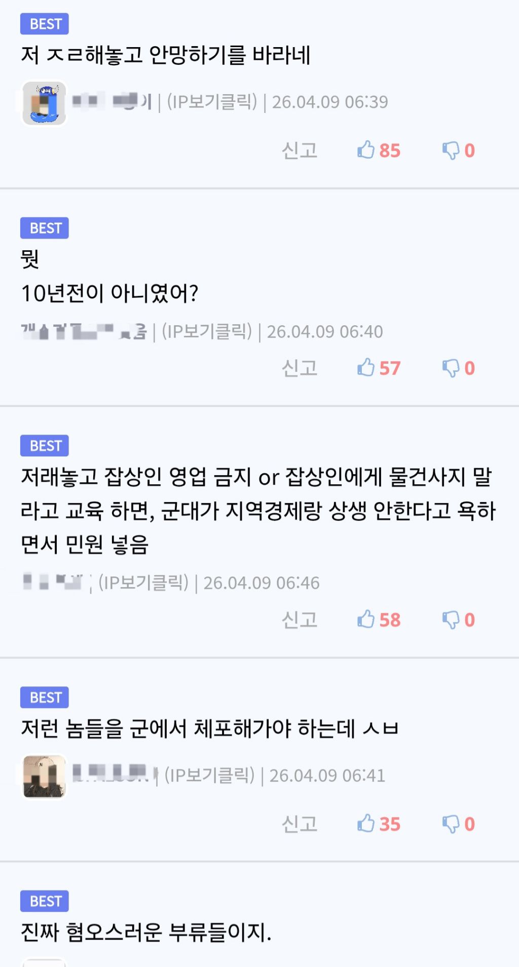군대에 없는 물건이라며 부모님 속여 파는 논산 훈련소 앞 상술 근황 작성자서강대학교|작성시간26.04.09|조회수2,556 목록 댓글 18 글자크기 작게가 글자크기 크게가 다음검색 현재 게시글 추가 기능 열기 북마크 공유하기 신고 센터로 신고 댓글 댓글 18 댓글쓰기 답글쓰기 댓글 리스트 작성자I.B.I LUV | 작성시간 26.04.09 단속 좀 빡세게 하라고 하... 작성자QuaSaR | 작성시간 26.04.09 사기로 신고해야됨 작성자중고차파괴자 | 작성시간 26.04.09 아무것도 안사가고 잘지냄 작성자곰 갈매기 프로미 스파이더 | 작성시간 26.04.09 단속을 못하는게 아님...그냥 안하는거임... 작성자치타 | 작성시간 26.04.09 논산시청에서 진짜 의지가 있었다면 저런거 싹 없어졌겠지 댓글 전체보기
