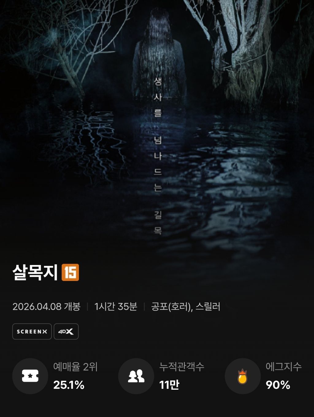 [영화]'살목지' 개봉 초반 에그지수 작성자Hailee Steinfeld|작성시간26.04.10|조회수10,147 목록 댓글 3 글자크기 작게가 글자크기 크게가 다음검색 현재 게시글 추가 기능 열기 북마크 공유하기 신고 센터로 신고 댓글 댓글 3 댓글쓰기 답글쓰기 댓글 리스트 작성자몽념, 낙화대 | 작성시간 26.04.10 볼만했음 작성자Dennis Cirkin | 작성시간 26.04.10 볼만했고 연출 나쁘지는 않았어요 ㅎㅎ 전 안무서웠음 작성자JTBC | 작성시간 26.04.10 볼줄몰라서90이면 좋은거에요?? 보려고하는데 댓글 전체보기