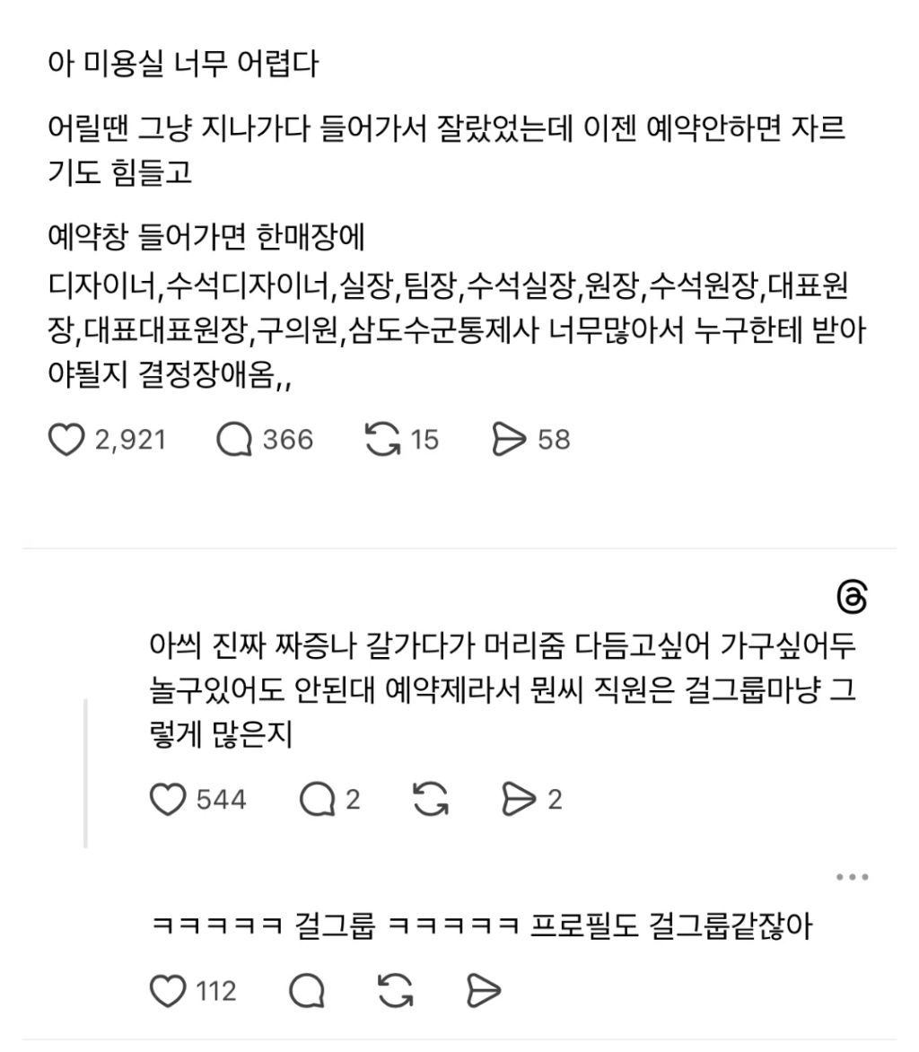작성자짤순태 작성시간 26.04.11 요즘 미용실 웃긴게