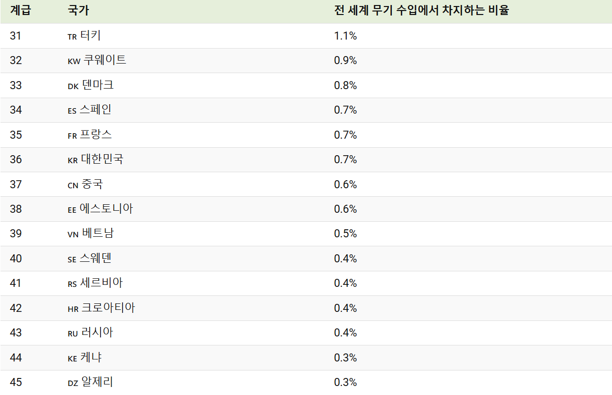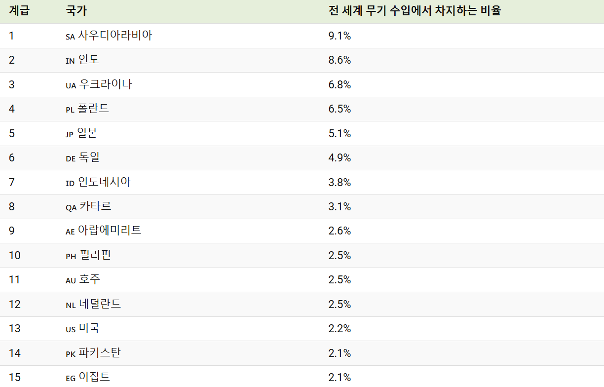안보 위협이 커지는 유럽이 전세계 무기 수입의 40%를 차지
