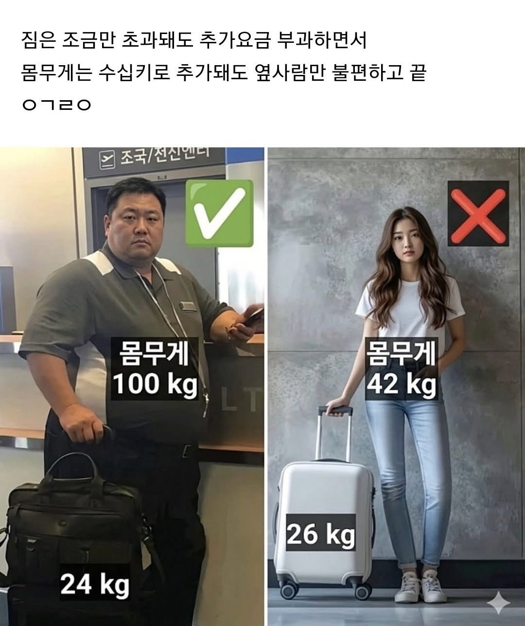 의외로 억울한 수화물 규정 작성자가을날4|작성시간26.04.15|조회수21,323 목록 댓글 2 글자크기 작게가 글자크기 크게가 다음검색 현재 게시글 추가 기능 열기 북마크 공유하기 신고 센터로 신고 댓글 댓글 2 댓글쓰기 답글쓰기 댓글 리스트 작성자그르지마 | 작성시간 26.04.15 왼쪽은 절대 100kg이 아닙니다 작성자극성지지자 | 작성시간 26.04.15 ㅈㅅ ㅎㅎ 댓글 전체보기
