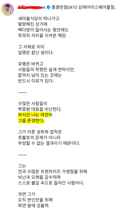 [SNS]빽다방의 그분을 언급하는 우유사장 작성자음교수|작성시간26.04.15|조회수2,676 목록 댓글 4 글자크기 작게가 글자크기 크게가 다음검색 현재 게시글 추가 기능 열기 북마크 공유하기 신고 센터로 신고 댓글 댓글 4 댓글쓰기 답글쓰기 댓글 리스트 작성자Madrid | 작성시간 26.04.15 왜 나여?? 작성자아저씨 | 작성시간 26.04.15 ㅋ 작성자스마일리 | 작성시간 26.04.15 이거나잡숴 이미지 확대 작성자내일해야지 | 작성시간 26.04.15 쓰레드 자아도취 개똥철학의 표본이네 댓글 전체보기