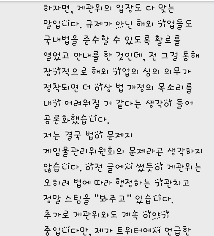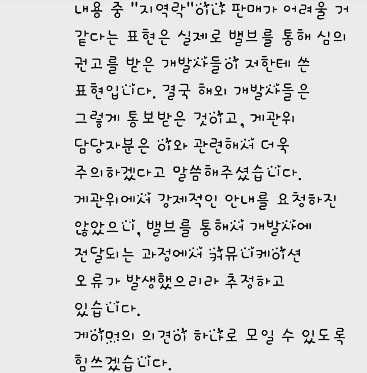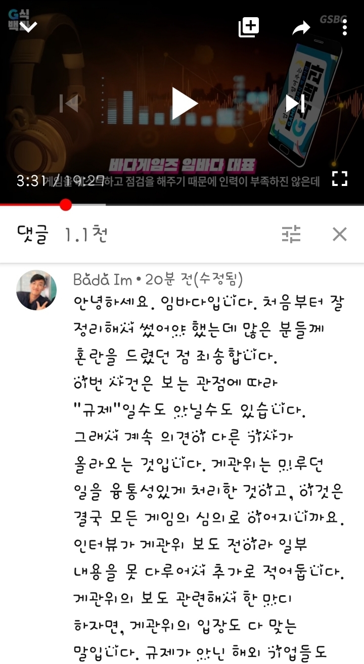 [기타]스팀 지역락 논란 이니시에이터 임바다 대표 인터뷰 작성자바트 심슨™|작성시간20.06.05|조회수496 목록 댓글 3 글자크기 작게가 글자크기 크게가 https://youtu.be/KavIm827z-E 다음검색 현재 게시글 추가 기능 열기 북마크 공유하기 신고 센터로 신고 댓글 댓글 3 댓글쓰기 답글쓰기 댓글 리스트 작성자마일즈 모랄레스 | 작성시간 20.06.05 그럴수도있고 아닐수도있습니다~ 작성자별빛미소 | 작성시간 20.06.05 규제일수도 아닐수도 있다라 작성자깔깔깔 | 작성시간 20.06.05 저것도 엄청 봐주면서 하는 말 같은데. 말이 권고고 안내지, 다른나라에는 규제도 없는데 행정기관에서 친절하게 '권고' 하고 '안내'하면 그걸 압력이라고 안 느낄수가 없을텐데. 괜한 분란만드느니 그냥 한국에 게임 출시 안하고 말지. 댓글 전체보기