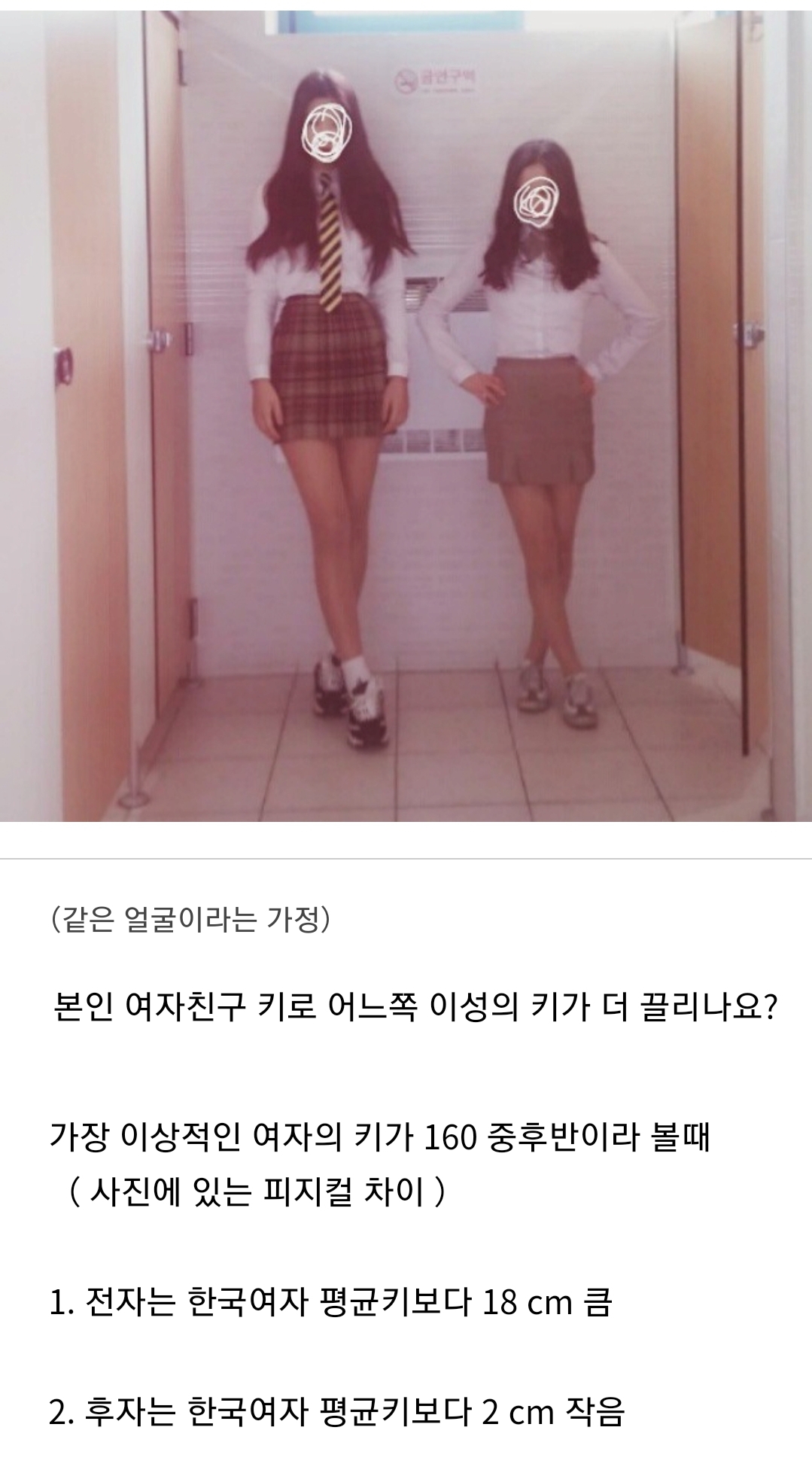 [기타]여자키 178cm vs 158cm 작성자참치|작성시간21.02.05|조회수5,481 목록 댓글 32 글자크기 작게가 글자크기 크게가 다음검색 현재 게시글 추가 기능 열기 북마크 공유하기 신고 센터로 신고 댓글 댓글 32 댓글쓰기 답글쓰기 댓글 리스트 작성자Rosé | 작성시간 21.02.05 158 선호 작성자Son 7 | 작성시간 21.02.05 사진상으론 닥전 작성자김연아 | 작성시간 21.02.05 111111111조금 부담스럽긴 하지만 그래도10센치 차이면 커버 가능 작성자메르데카 | 작성시간 21.02.05 여자키는 상관없다고 보는데. 얼굴이 얼마나 예쁜지 가슴이 얼마나 큰지가 중요하지 작성자심우철 | 작성시간 21.02.05 닥전 댓글 전체보기