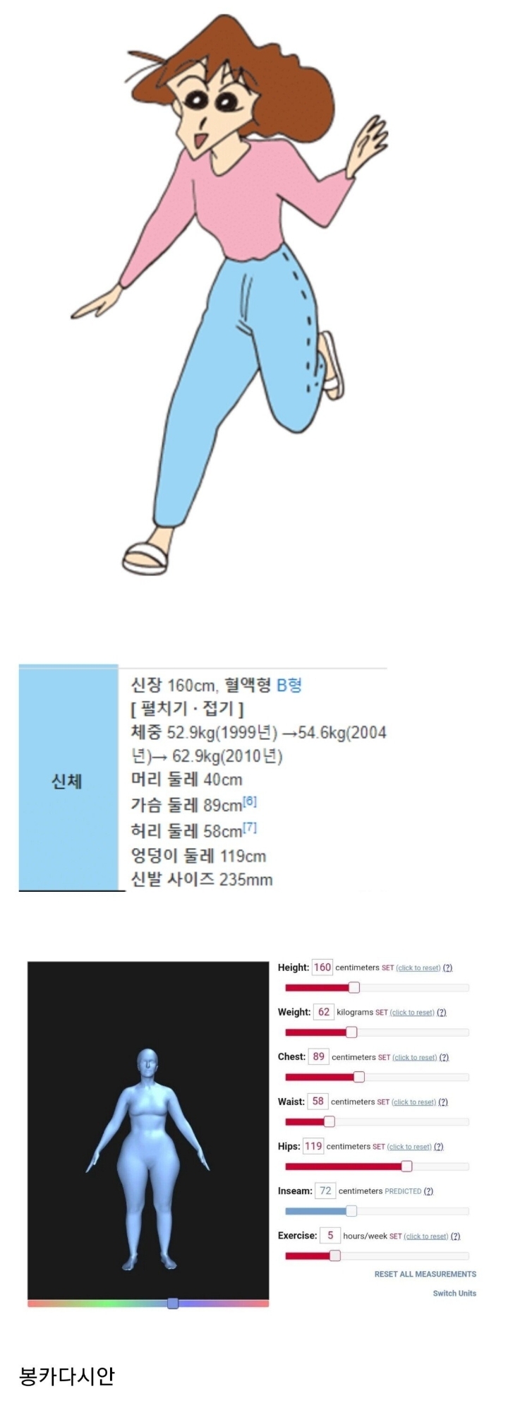 짱구엄마 프로필 몸매 시뮬레이션.jpg 작성자wolf|작성시간20.06.29|조회수2,696 목록 댓글 3 글자크기 작게가 글자크기 크게가 ㅜ 다음검색 현재 게시글 추가 기능 열기 북마크 공유하기 신고 센터로 신고 댓글 댓글 3 댓글쓰기 답글쓰기 댓글 리스트 작성자그라운드 위 壁 | 작성시간 20.06.29 키 160였나? 생각보다 작은데 작성자이천쌀벌레 | 작성시간 20.06.29 하체비만이네 작성자달좋은밤 | 작성시간 20.06.29 뭐야 이게 ㅋㅋㅋㅋ 댓글 전체보기