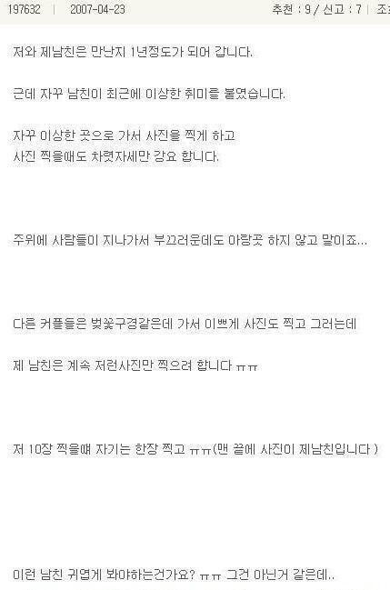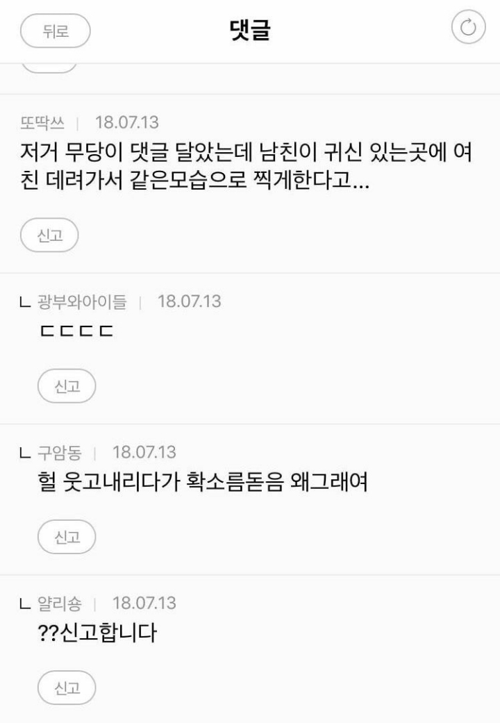 여친을 귀신이 있는 곳에 데려가서 사진찍는 남자ㄷㄷ 작성자오마이걸 효정|작성시간20.06.30|조회수2,145 목록 댓글 4 글자크기 작게가 글자크기 크게가 . 다음검색 현재 게시글 추가 기능 열기 북마크 공유하기 신고 센터로 신고 댓글 댓글 4 댓글쓰기 답글쓰기 댓글 리스트 작성자유랑오징어 | 작성시간 20.06.30 잠 다잤네 작성자작고소중한나의고양이 | 작성시간 20.06.30 왜지? 작성자강혜원 | 작성시간 20.06.30 섬뜩하다 작성자밥먹고양치해라 | 작성시간 20.06.30 무당 귀신같은소리하네 이거 고전인데 그땐 걍 남친이 귀신컨셉으로 찍나 그러고 다들 웃고 넘겼는데 댓글 전체보기