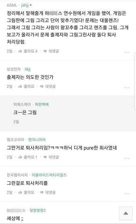 하이닉스 대물렌즈 사건 작성자거짓말쟁이|작성시간20.07.13|조회수8,154 목록 댓글 10 글자크기 작게가 글자크기 크게가 대물렌즈젖산술먹고 했나? 다음검색 현재 게시글 추가 기능 열기 북마크 공유하기 신고 센터로 신고 댓글 댓글 10 댓글쓰기 답글쓰기 댓글 리스트 작성자치츄 | 작성시간 20.07.13 어우 작성자wheein | 작성시간 20.07.13 남자들만 있는 회산가? 작성자GENESIS | 작성시간 20.07.13 이건 내가 인사담당이래도 못봐준다 ㅋㅋㅋㅋ 작성자하늘빛 | 작성시간 20.07.17 헐 작성자믕지 | 작성시간 20.07.30 저거 2018년도 사건.. 저도 신입이였음 댓글 전체보기