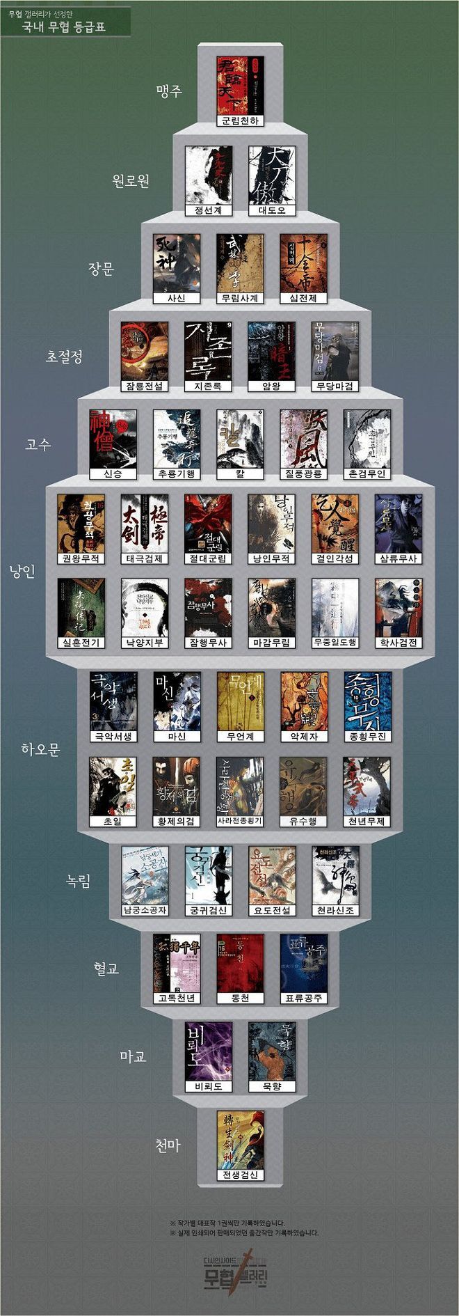 국내 무협소설 등급표.jpg 작성자콘테|작성시간22.07.11|조회수2,534 목록 댓글 17 글자크기 작게가 글자크기 크게가 주관주의 다음검색 현재 게시글 추가 기능 열기 북마크 공유하기 신고 센터로 신고 댓글 댓글 17 댓글쓰기 답글쓰기 댓글 리스트 작성자하늘가람 | 작성시간 22.07.11 와... 나도 무협 나름 많이 봤다고 생각했는데, 하나도 모르겠네... 내가 제목을 잘 기억을 못하는 건가...군림천하랑 쟁선계는 제목만 들어봤고... 작성자썸머맨 | 작성시간 22.07.11 ㄷㄱ 작성자IVE안유진 | 작성시간 22.07.11 작성자히데매니아 | 작성시간 22.07.12 무협 ㄷㄱ 작성자다현 | 작성시간 22.07.12 무협소설 등급 댓글 전체보기