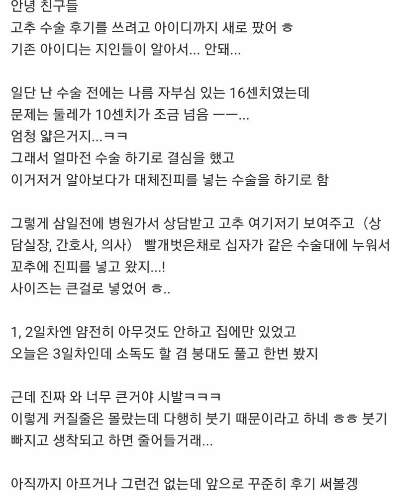 19) 어느 남자의 쥬지 확대 수술 후기 작성자자연|작성시간22.07.25|조회수4,688 목록 댓글 14 글자크기 작게가 글자크기 크게가 다음검색 현재 게시글 추가 기능 열기 북마크 공유하기 신고 센터로 신고 댓글 댓글 14 댓글쓰기 답글쓰기 댓글 리스트 작성자다현 | 작성시간 22.07.25 얼마나 커진거야ㄷㄷ 작성자시바견 | 작성시간 22.07.25 ㄷㄷㄷㄷ 작성자James Blunt | 작성시간 22.07.25 ㄷㄷㄷ 작성자RedDevils | 작성시간 22.07.25 ㄷ ㄷ 작성자이나경 | 작성시간 22.07.25 ㄷㄷ 댓글 전체보기